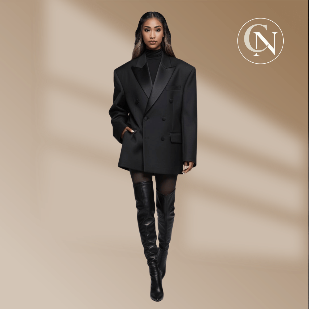 Blending rich neutrals with quiet sophistication. This chocolate blazer, ruched top, and navy tailored trousers create the perfect balance of chic, polished, and effortlessly elevated style. Finished with a structured tote and pointed heels — an everyday look that still feels luxurious. Tap to shop this refined neutral edit.