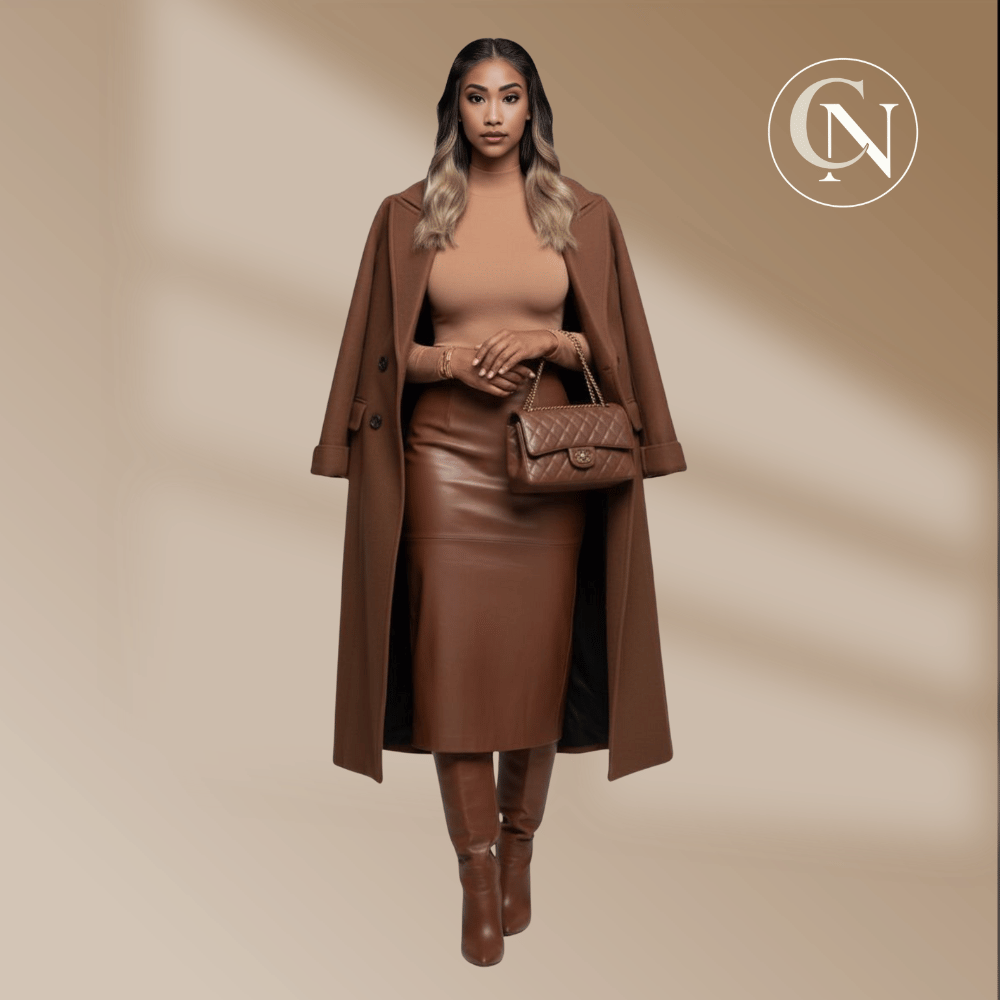 A black coat, a crisp white blouse, and wide-leg leather trousers… it’s the simplest way to look instantly put-together. Whether you’re a black-on-black queen or you love the warmth of deep chocolate, both outfits give effortless quiet luxury. ✨ Tap to shop the full look